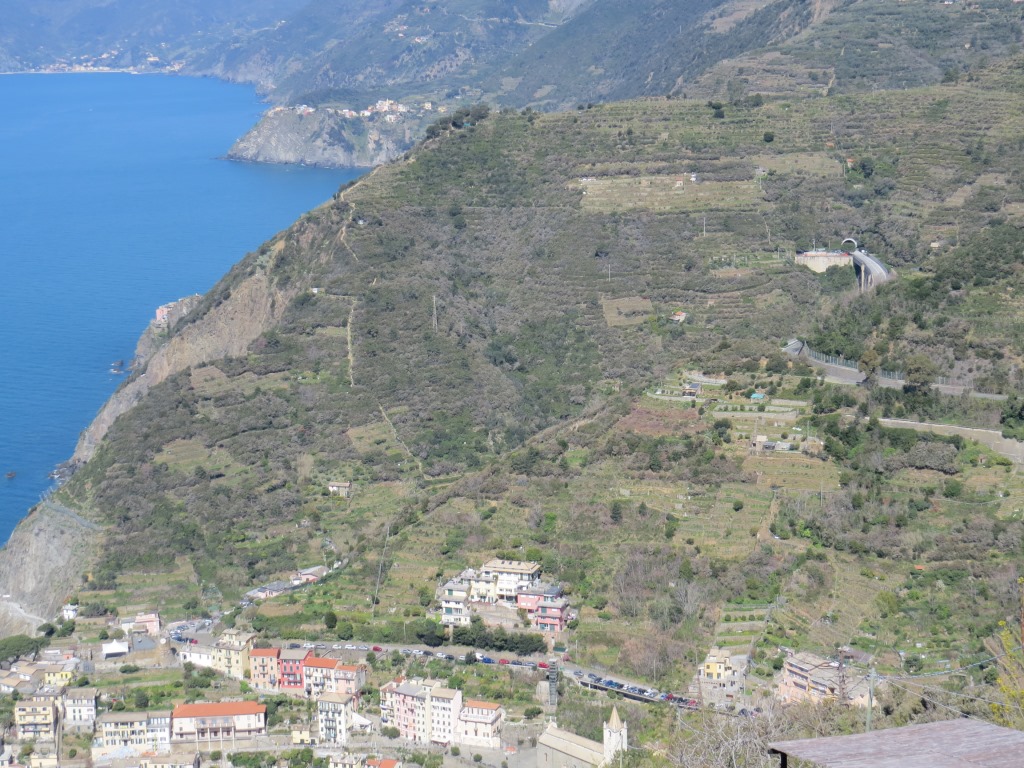 gut ersichtlich der Wanderweg den wir am Vortag gemacht haben. Er führte von Volastra hinunter nach Manarola Datum 15.06.2023