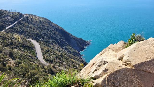 die ganze Cinque Terre liegt uns zu Füssen. Der Blick reicht bis zur Landzunge Punta Mesco Datum 15.06.2023