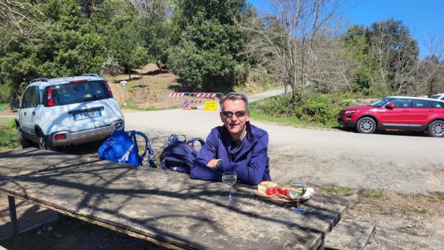 während dem Wandern geniessen wir die schöne Aussicht auf die weissen Berge (Marmorabbau) von Massa Carrara Datum 15.06.2023