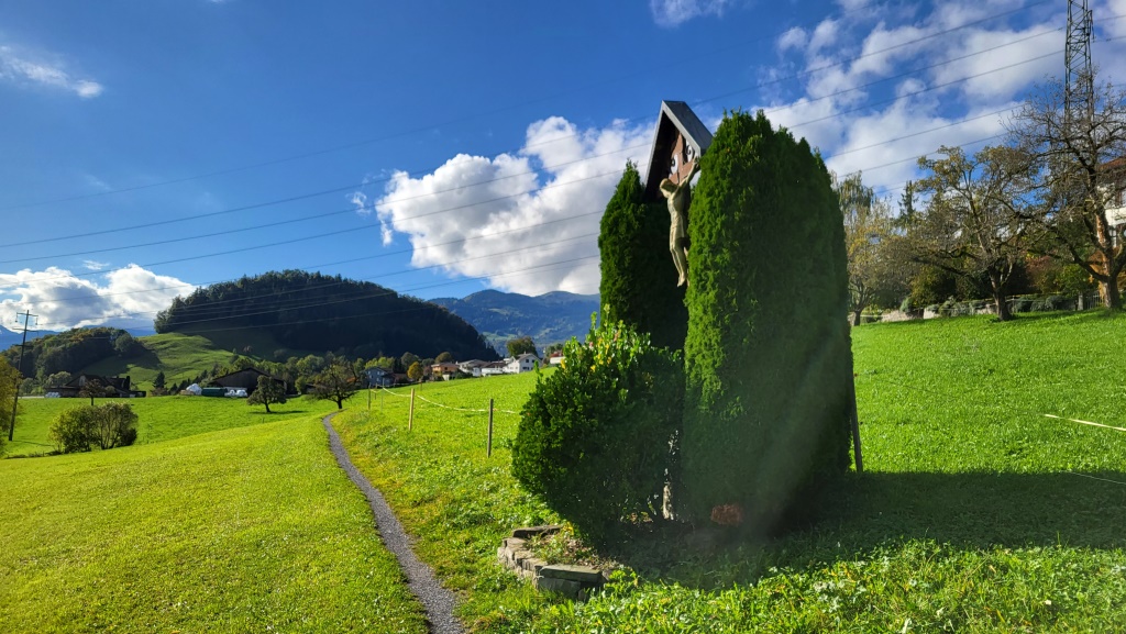 nach dem Essen geht es auf der Via Francisca, Rheintaler Höhenweg und auf dem Jakobsweg weiter Datum 21.12.2023