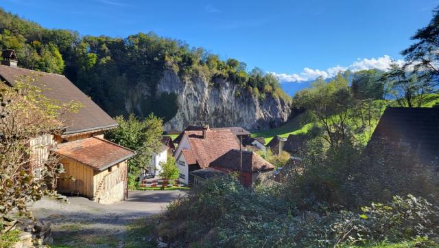 bei einem Bauernhof in Stieg bekommen wir Klappstühle und ein Tisch. So können wir das mitgebrachte Fondue vorbereiten Datum 21.12.2023