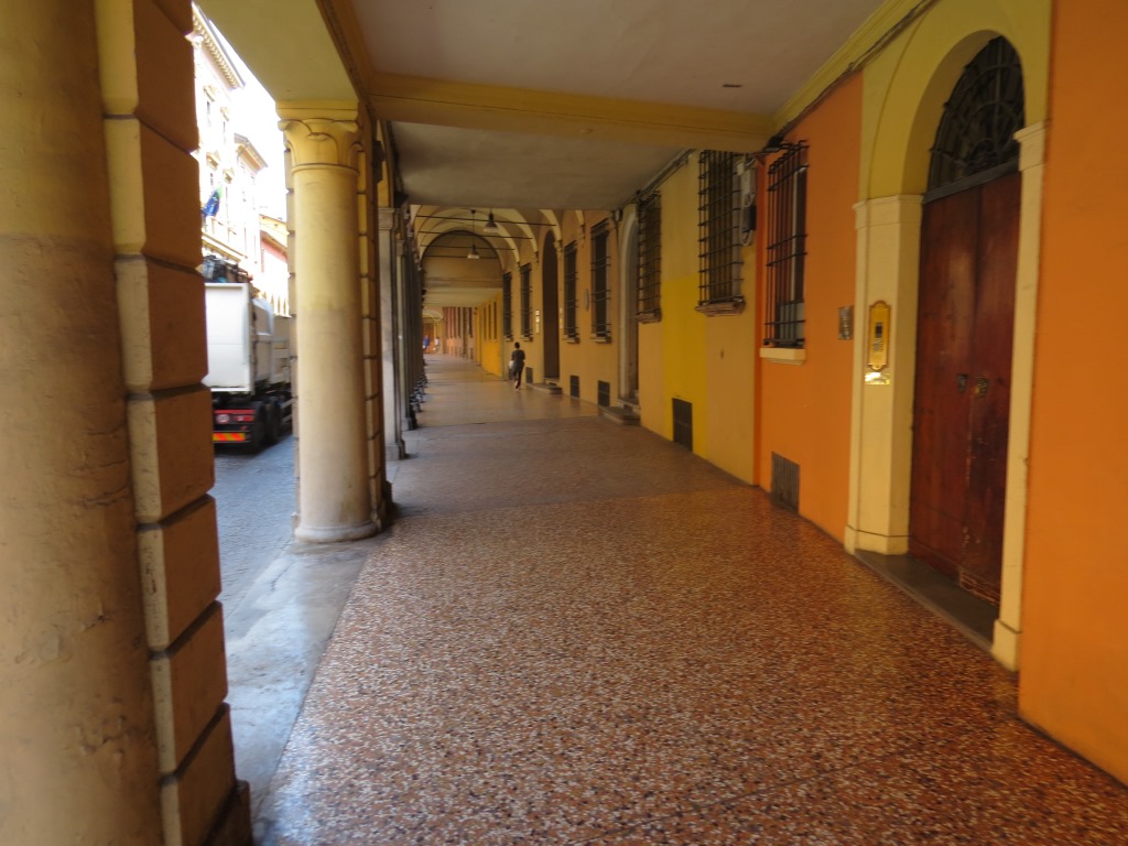 wir laufen durch die Arkaden von Bologna. Bologna besitzt 38km davon