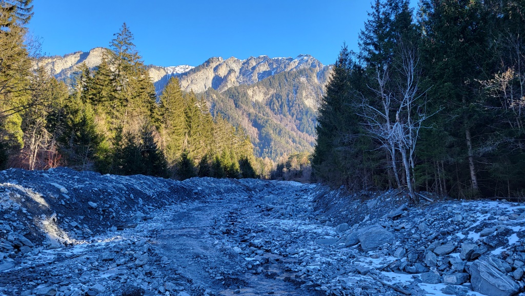 wir erreichen die Maschänser Rüfi, ein sehr wilder Bergbach Datum 15.01.2024