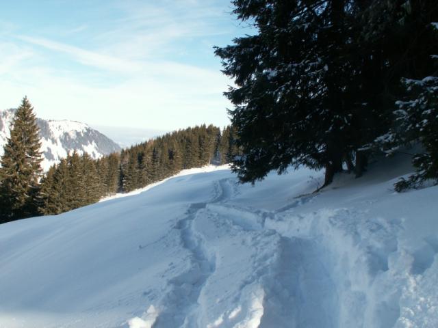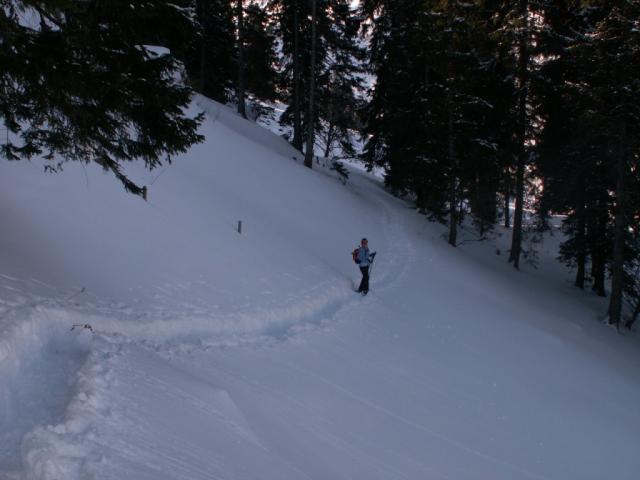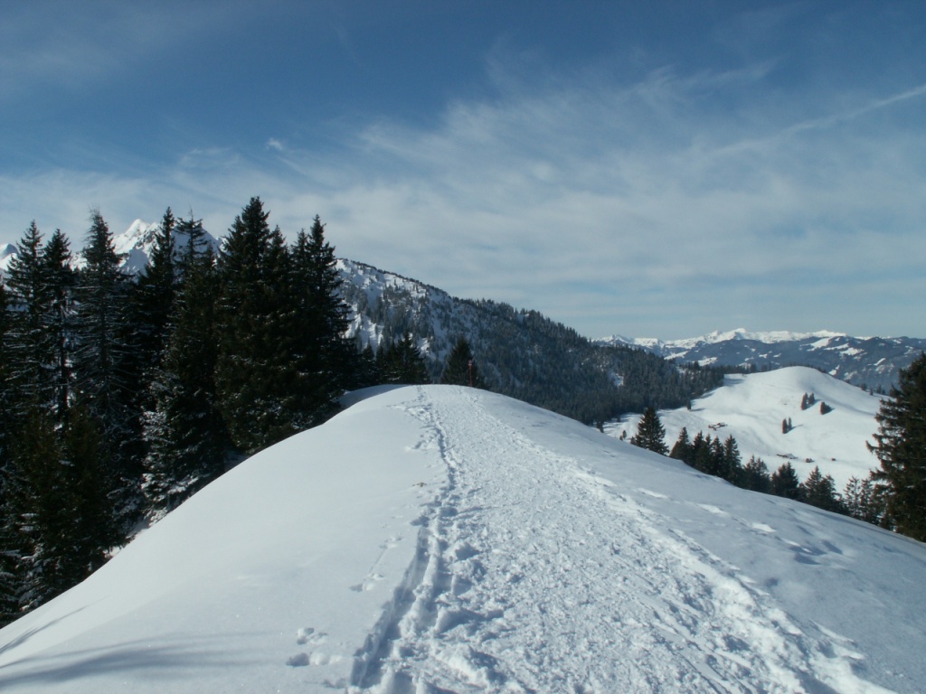 nun geht's durch den Wald. Im Hintergrund der Schwalmis