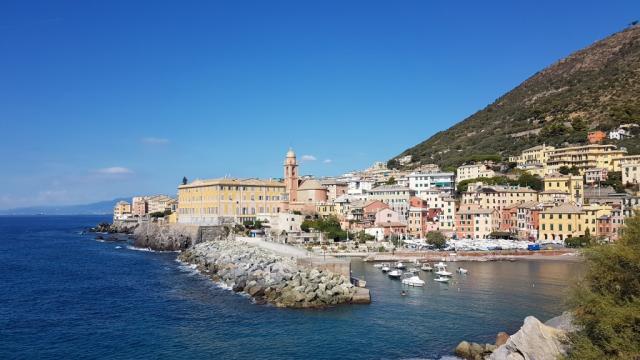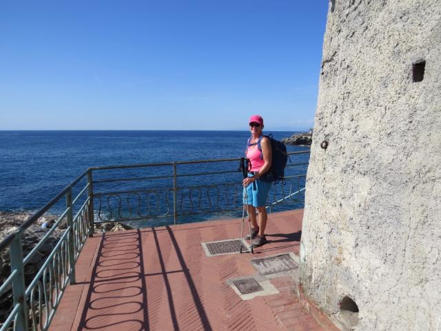 ...und erkennt, das wir Bogliasco erreicht haben. Hier endet die Strandpromenade "Anita Garibaldi"