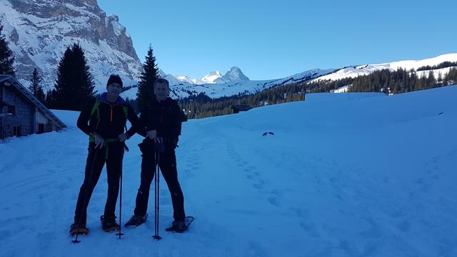 Erinnerungsfoto aufgenommen auf dem höchsten Punkt unserer Schneeschuhtour der Chiemattenhubla 2028 m.ü.M.