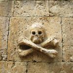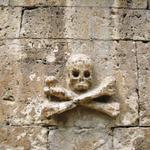 an der Aussenfassade der Iglesia de Santo Domingo 16.Jh. regen zwei steinerne Totenköpfe zum Nachdenken an Datum 08.07.2012