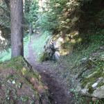 durch einen Wald geht es ins Val Punteglias runter Datum 07.09.2010