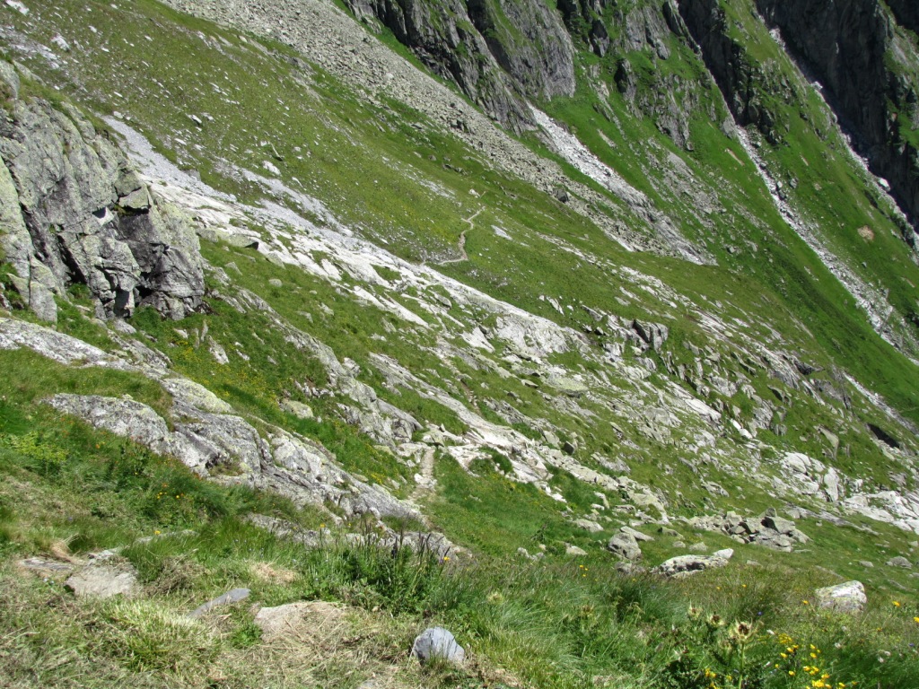 über steile Grashänge führt der Pfad aufwärts Datum 07.09.2010