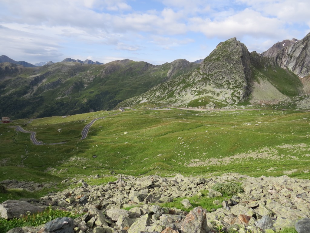 wir geniessen den schönen Blick auf das Tal und auf die Passstrasse mit seinen vielen Kehren Datum 29.08.2016