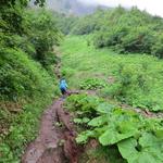 bei Nässe wie heute ist hier der Wanderweg rutschig