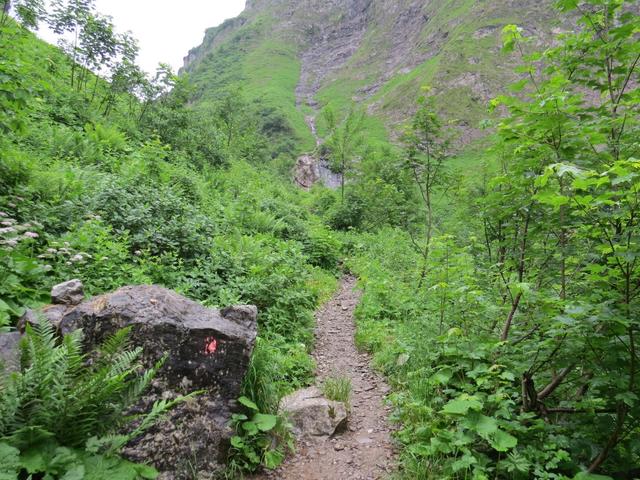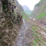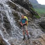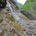 wegen dem bei Nässe rutschigen Weg, nehmen wir danken die Seilsicherung in die Hand