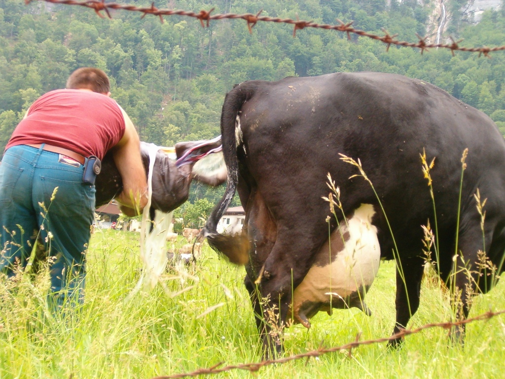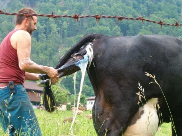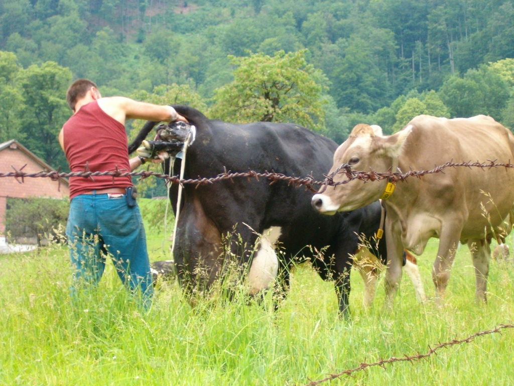 der Bauer nimmt das frischgeborene Kalb in die Arme Datum 29.11.2006