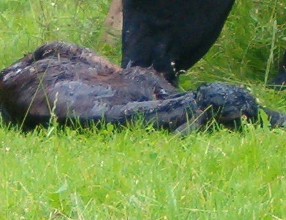 das junge Kalb liegt am Boden Datum 29.11.2006