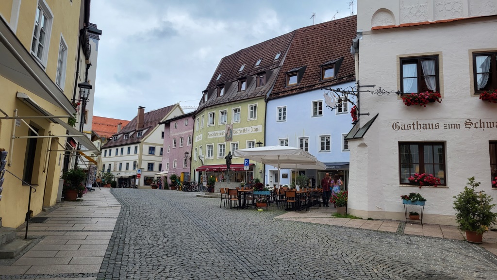 es hat aufgehört zu regnen. Wir laufen durch die Altstadt von Füssen das direkt an der Lech liegt