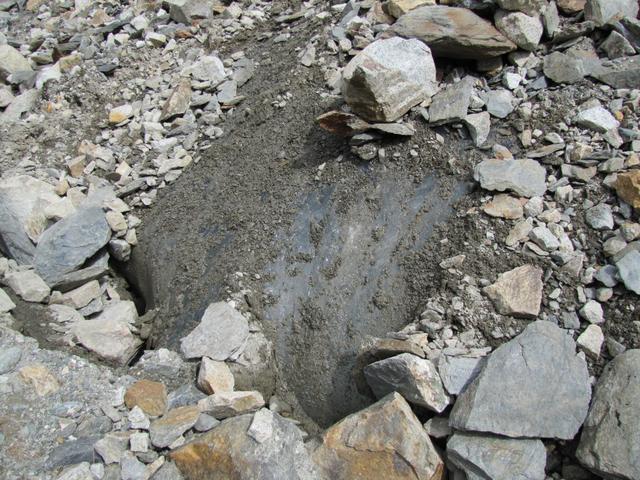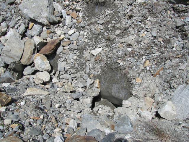 rechts vom Gletschermaul betritt man nun das durch Schutt verborgene Eis