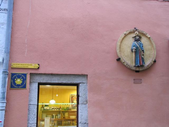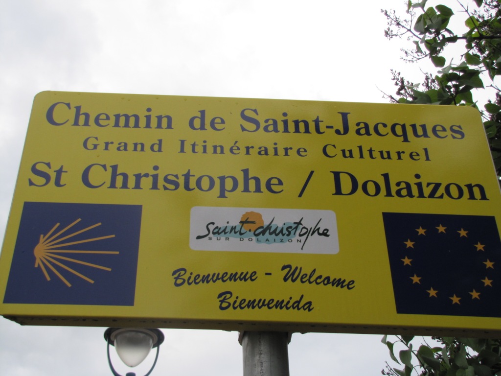 Mäusi liest die Hinweistafeln über den Chemin de Compostelle Datum 01.06.2010