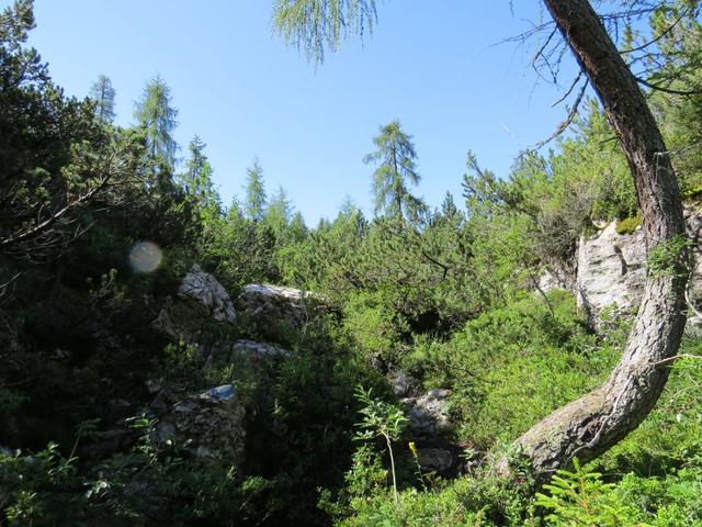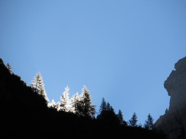 durch einen Lärchenwald geht es weiter voraus Datum 22.09.2014
