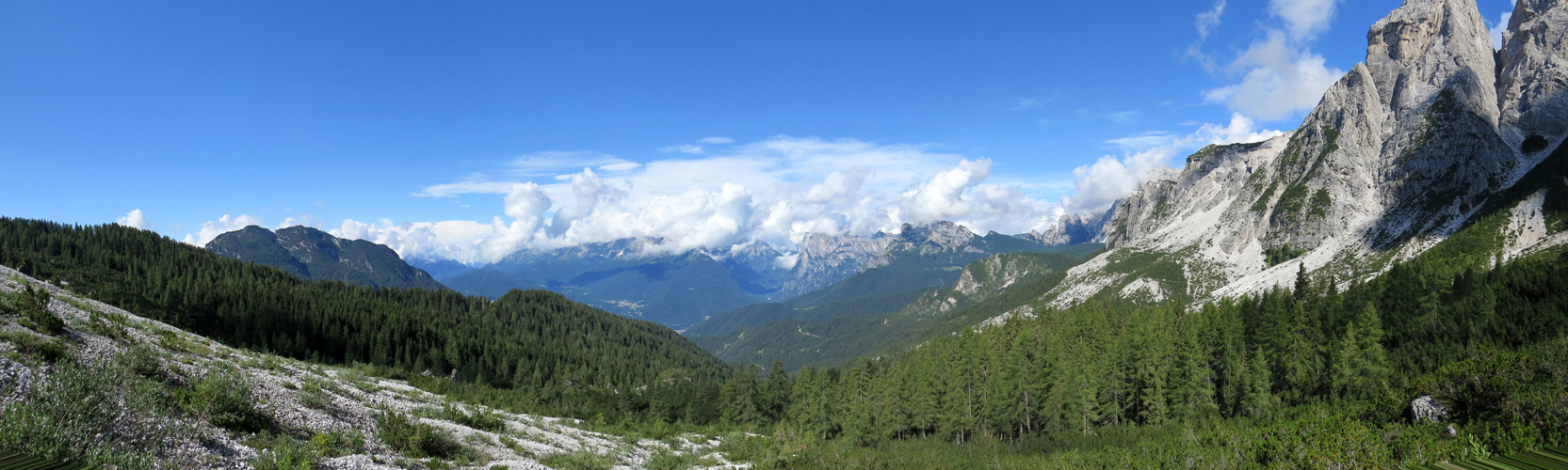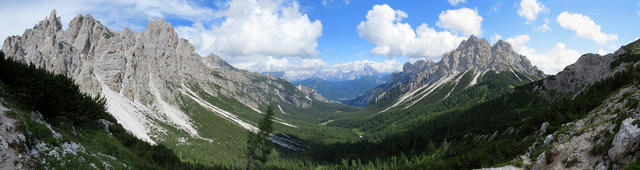 schönes Breitbildfoto von der Forcella de Zita Sud ins Tal Van de Zita de Fora. Rechts die Schiara Gruppe Datum 22.09.2014