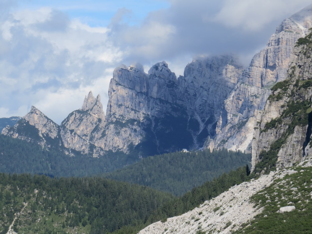 Blick zurück zum Rifugio Brutto Carestiato mit der Moiazza Gruppe Datum 22.09.2014