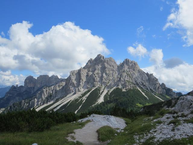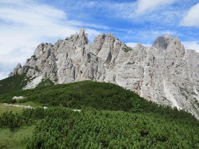 wir haben die Forcella del Moschesin 1975 m.ü.M. erreicht. Was für ein Blick auf die Cima di Pramper Datum 22.09.2014