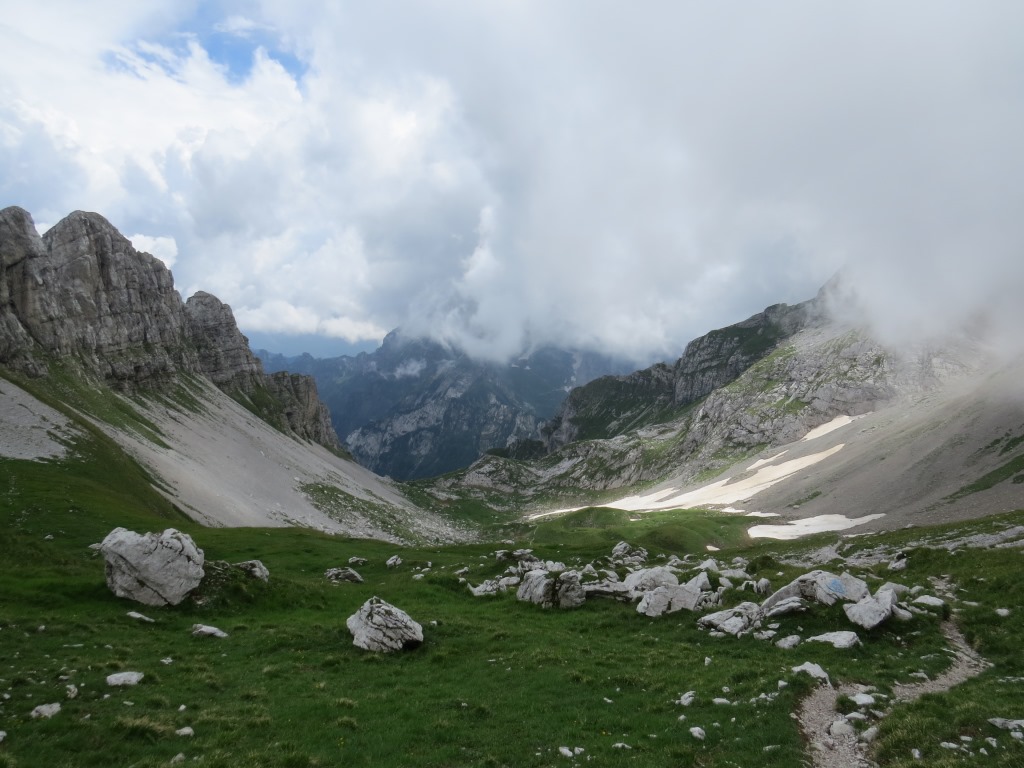 Blick zurück Richtung Passo Duran und die Duran Spitzen Datum 22.09.2014