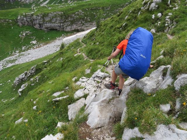 der Weg führt nun endlos steil abwärts Richtung Rifugio Pian de Fontana Datum 22.09.2014