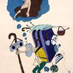 Franco beim schreiben vom Tagesbericht. Über unsere Köpfe die Kleider