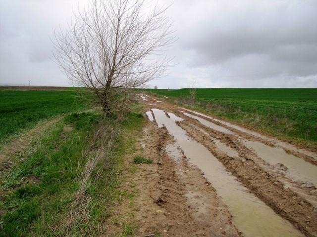 über morastige und schlammige Feldwege geht es weiter Richtung Burgos