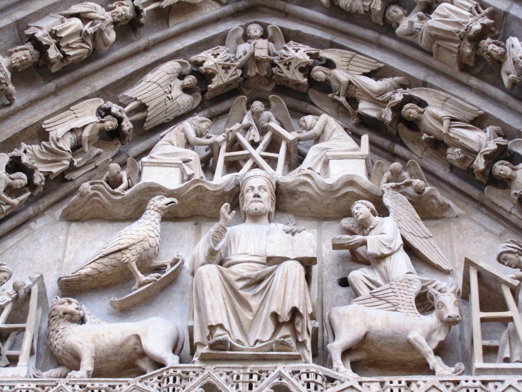in der Mitte Christus umgeben von den 4 Evangelisten und von den 24 älteren der Apokalypse