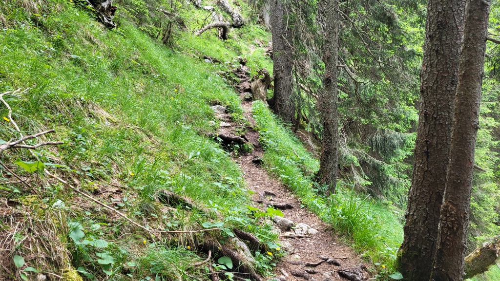 der Abstieg führt danach ostwärts hinunter in das Sägertal