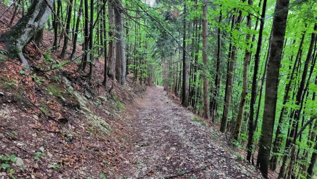 auf bequemem, breitem Fahrweg geht es auf dem Maximilianweg und dem E4 weiter bergab Datum 13.01.2025