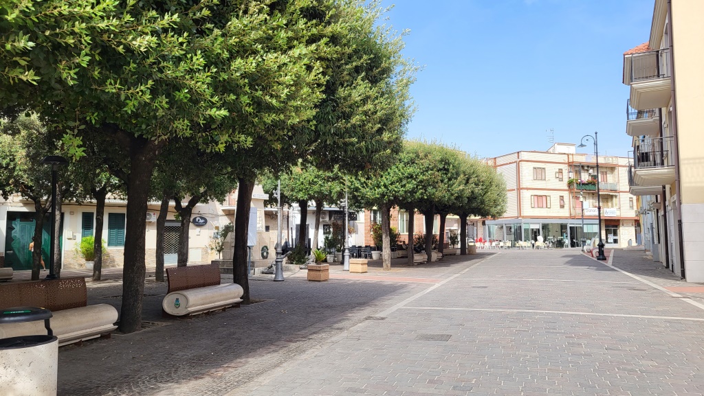 über eine schöne Allee aus Orangenbäume, erreichen wir das Städtchen Stornarella Datum 06.12.2023