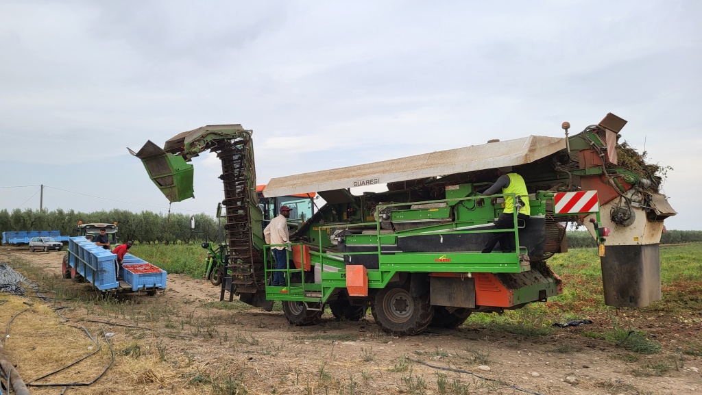riesige Maschinen ernten die Tomaten und befördern sie automatisch... Datum 06.12.2023