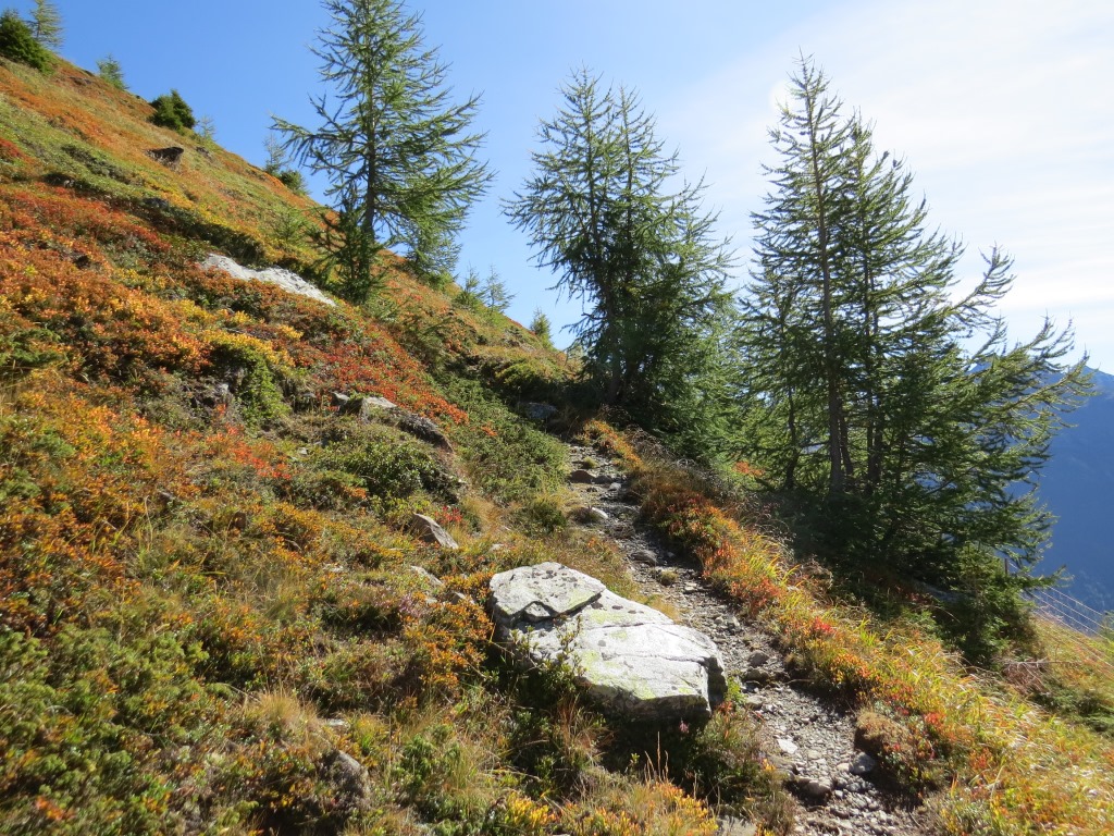 wieder führt uns der Bergweg durch einen Lärchenwald...
