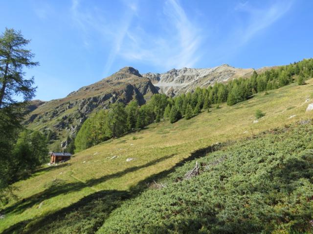 wir blicken zurück zur Chamanna dal Bescher und hinauf zum Muott' Auta