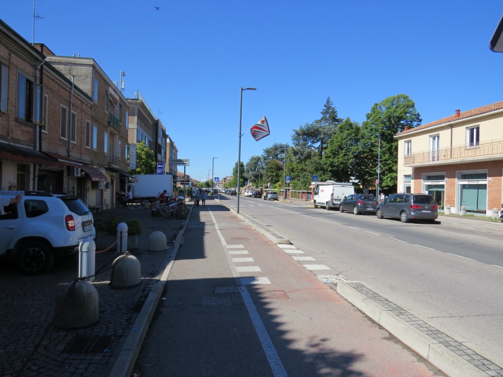 schnurgerade führt die Strasse aus Ferrara heraus. Die Via Romea folgt der Strasse... Datum 12.05.2023