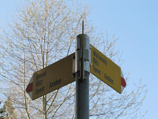 Wegweiser auf der Alp Bütz. Im Hintergrund der Speer. Den haben wir auch schon besucht