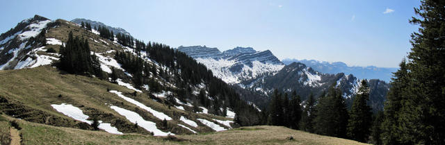 schönes Breitbildfoto beim Übergang mit Blick Richtung Chüemettler und Federispitz. Den haben wir auch schon besucht
