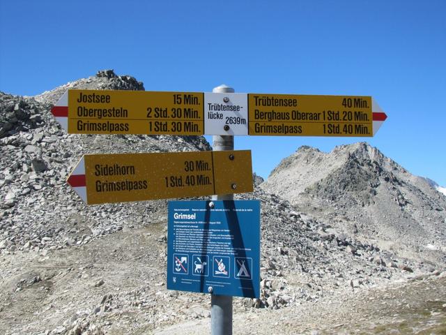 Wegweiser auf dem Grimselpass 2165 m.ü.M. Datum 13.10.2011