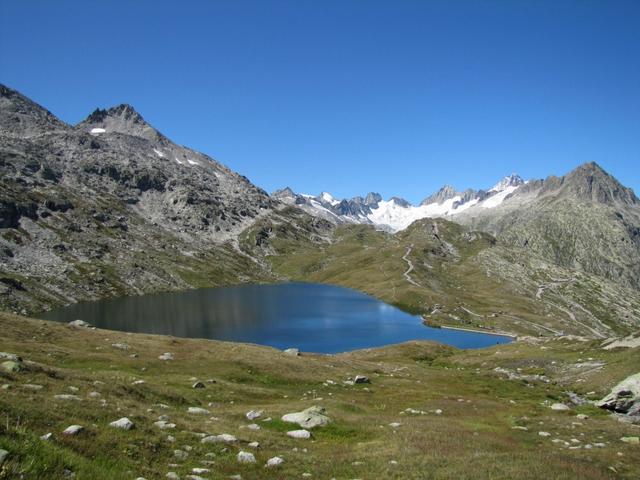 Blick zum Gelmersee und Gelmerhütte. Dort waren wir auch schon Datum 13.10.2011