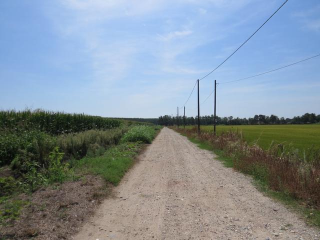 schnurgerade zieht sich nun der Feldweg Richtung Palestro