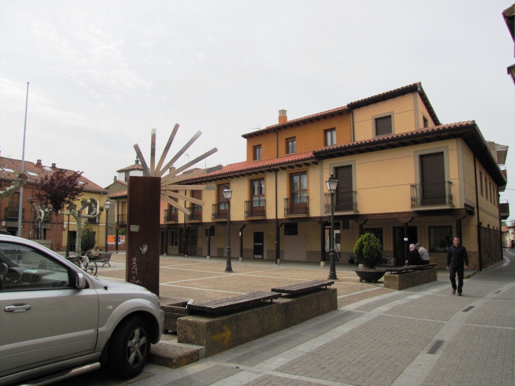 am Vortag in El Burgo Ranero bei der Kirche aufgehört. Heute am gleichen Ort Start der neuen Etappe Datum 02.09.2012