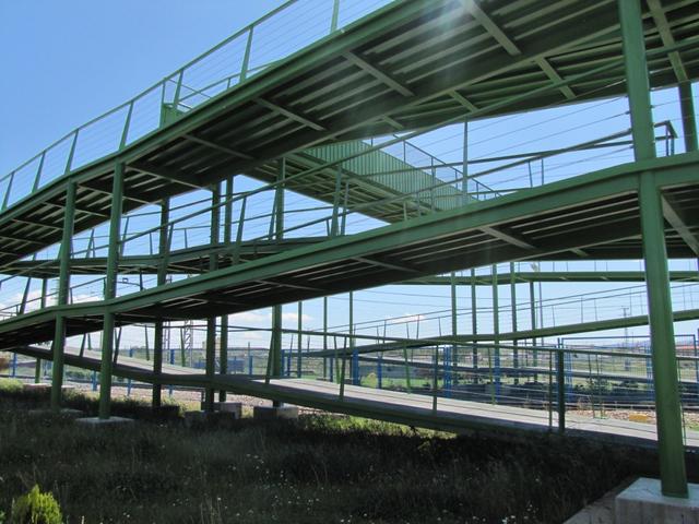 über ein Gewirr von Fussgängerpasserelle führt der camino über eine Hauptstrasse Datum 15.10.2012
