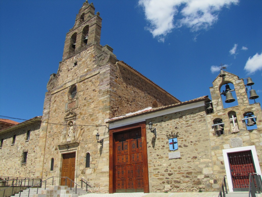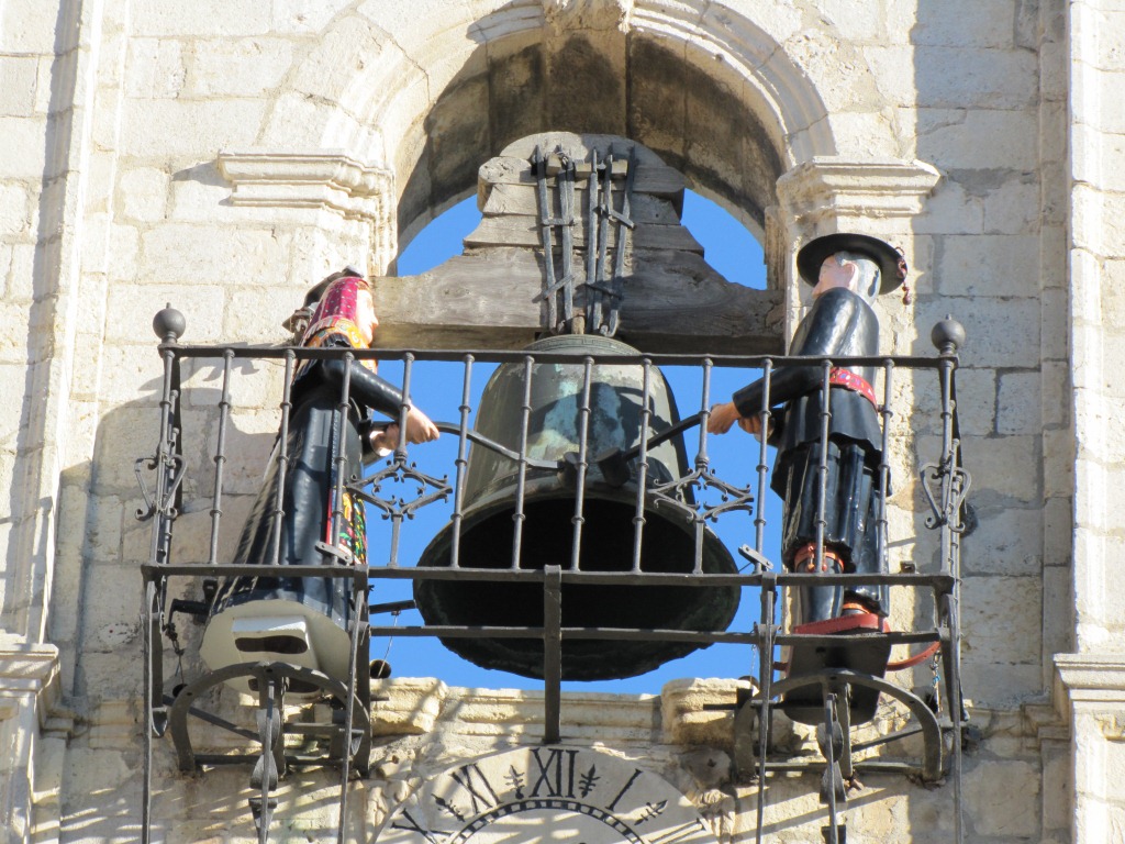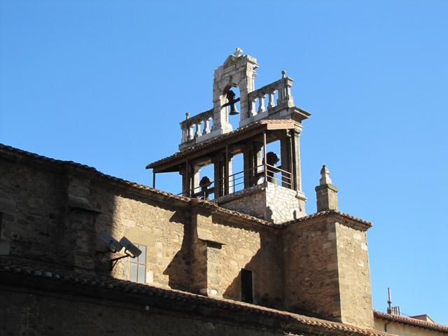 die Kirche von Santibañez de Valdeiglesias. Man beachte die Glocken. Sie hängen ausserhalb vom Kirchturm Datum 10.10.2012