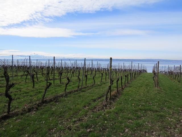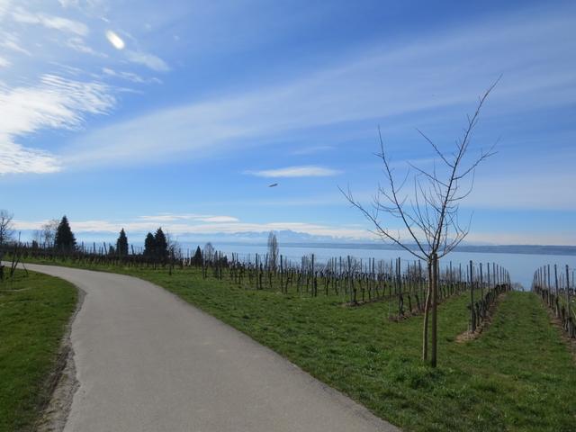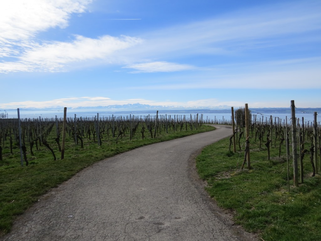 über einen schönen Höhenweg und Blick über Rebhänge wandern wir Richtung Hagnau Datum 05.04.2018
