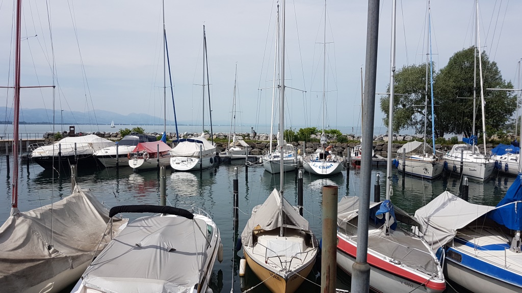bei der alten Fähre im Hafen von Lochau, entscheiden wir uns spontan eine Mittagspause einzulegen