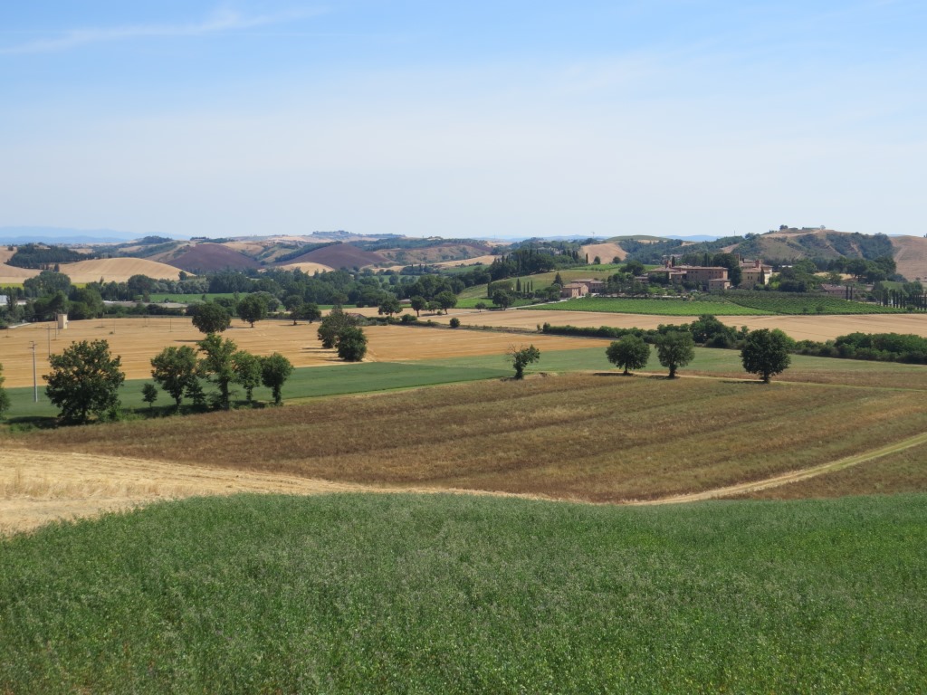 dia Via Francigena führt uns kilometerlang an Kornfelder entlang