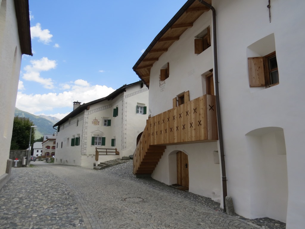 am Planta Turm 13.Jhr. vorbei, zwischen schön restaurierten Engadiner Häusern hindurch...