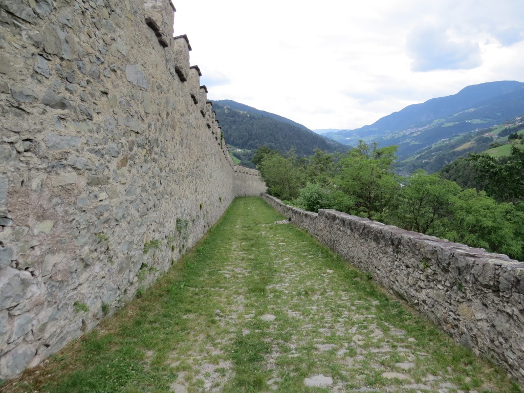 neben der ehemaligen Wehrmauer der Burg, wandern wir abwärts Richtung Klausen-Chiusa